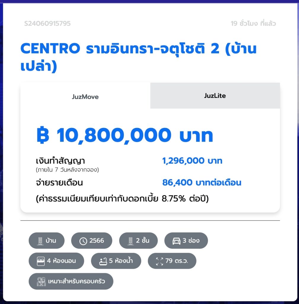 - Buyer เลือกโมเดล Juzmove ไม่บวกราคาบ้าน (เริ่มผ่อนจากราคาบ้าน)